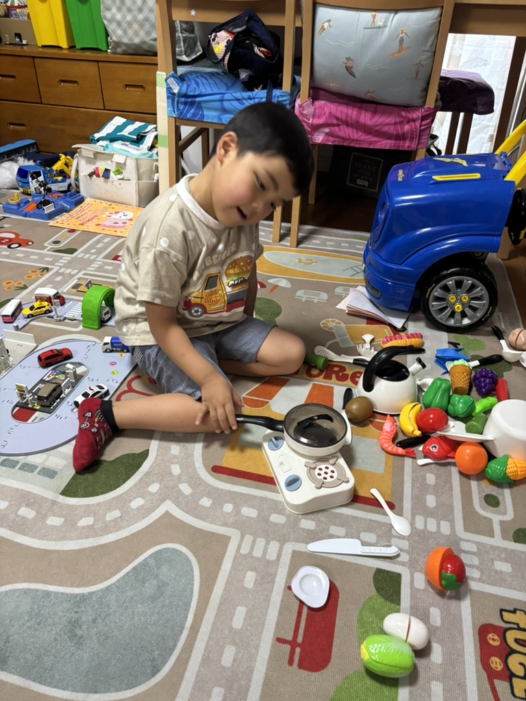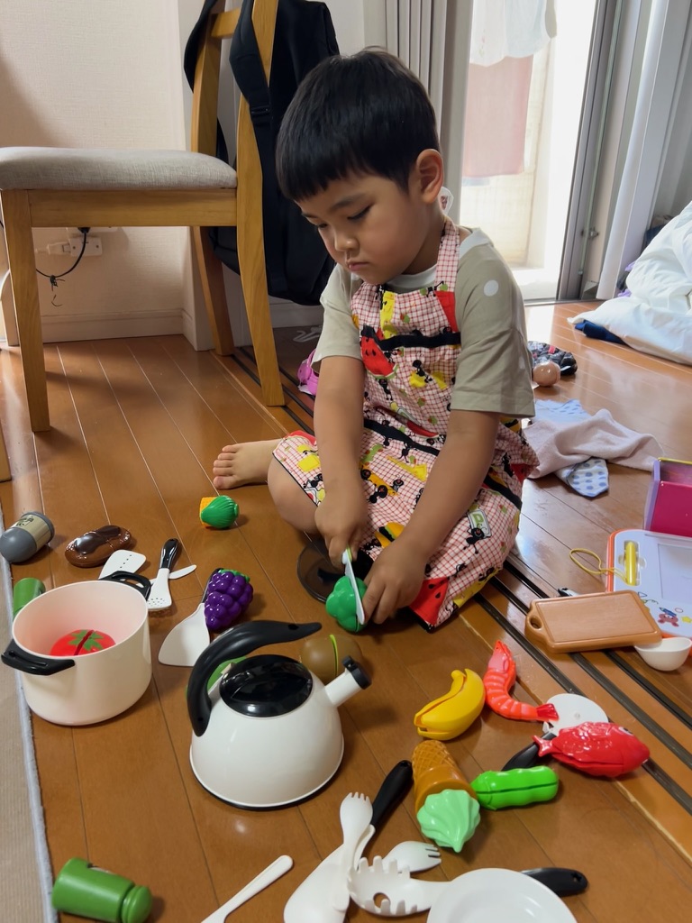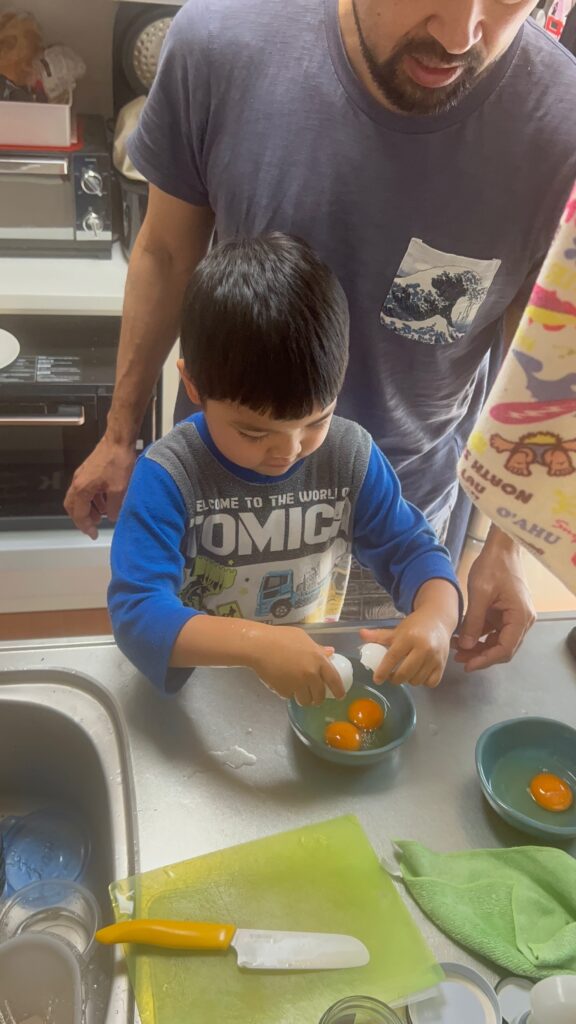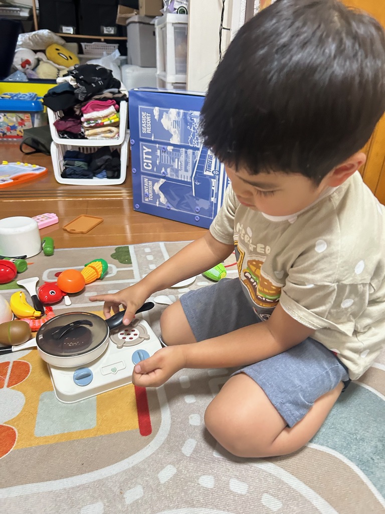 I love playing with my cooking set. I can make so many delicious things. I am also really good at prep work, cutting and chopping. Some of my creations may not sound great, combinations like kiwi, fish, and broccoli soup, but don’t knock it till you’ve tried it. Mommy and Daddy really like my cooking!