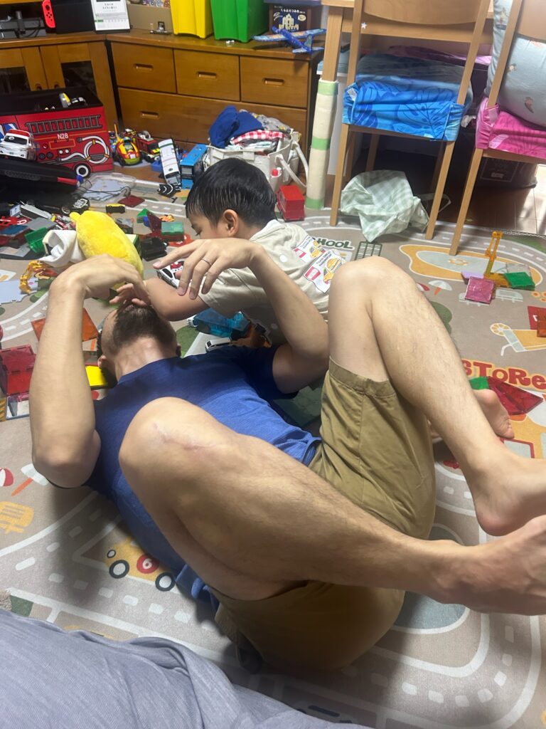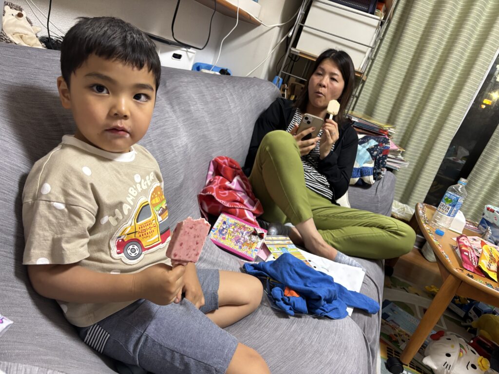 We weren’t sure what to do for lunch, so we stopped by a bento place on the way home to pick up lunch. I had fun playing with Nana and the door.