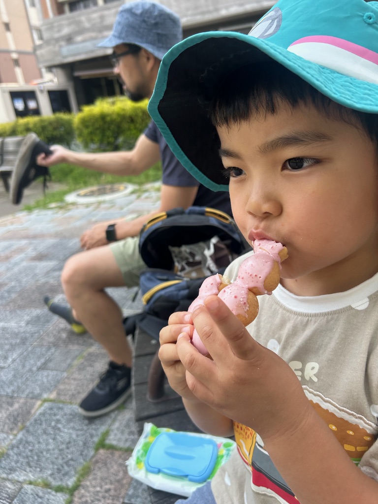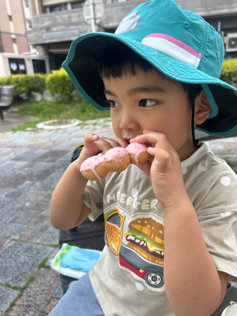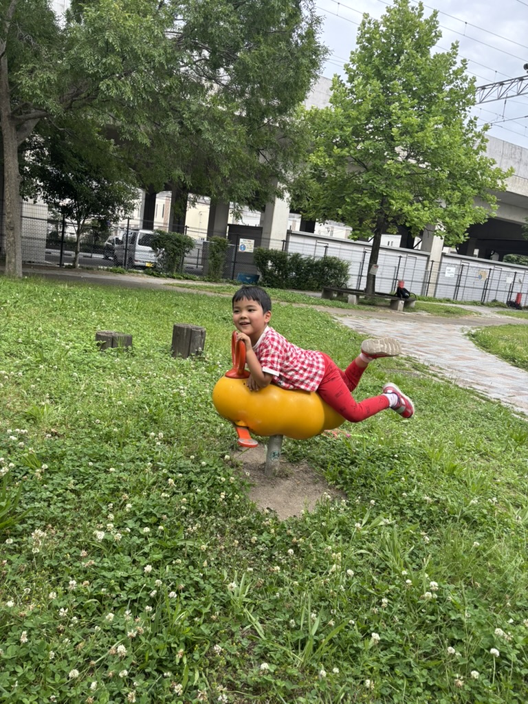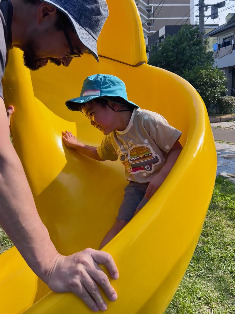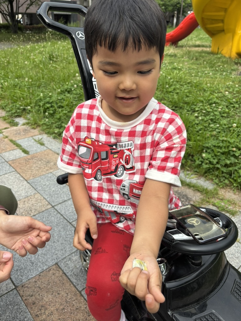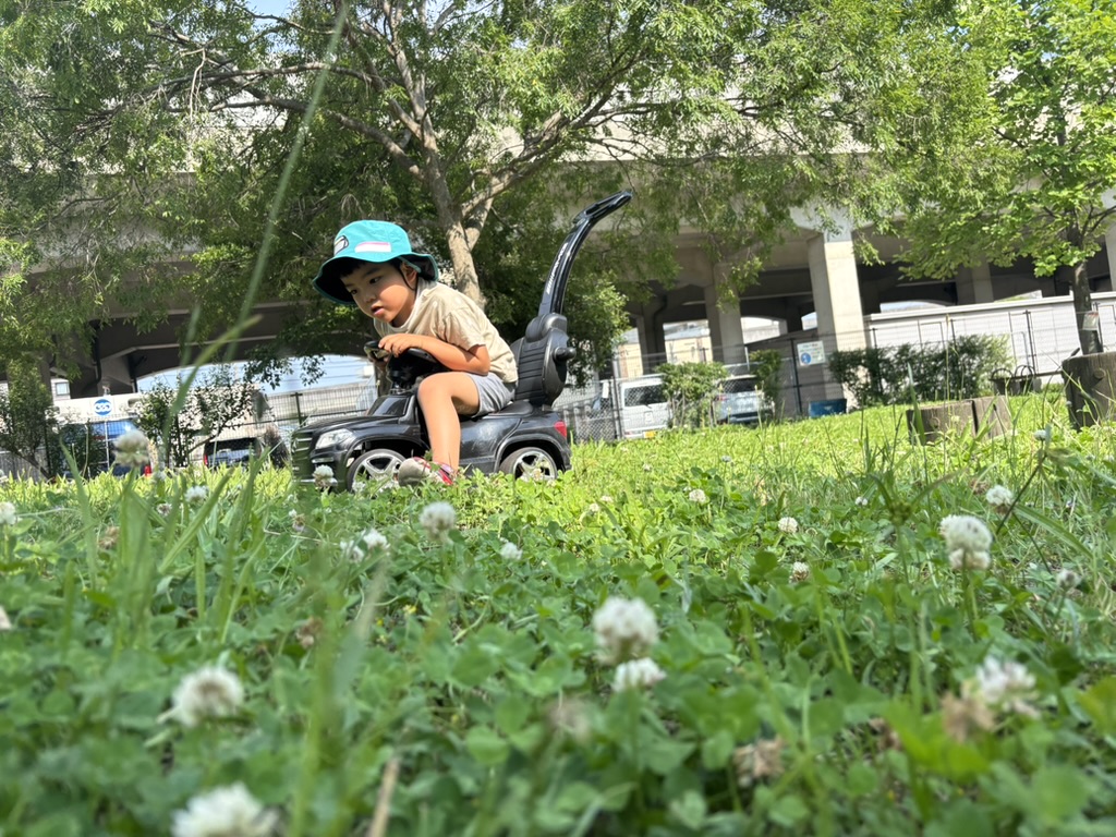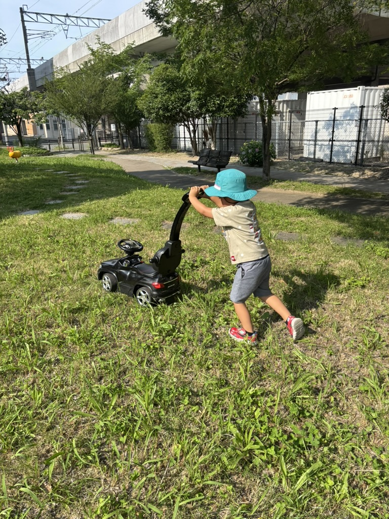 Yesterday was a rainy day, but today was a very nice and sunny day! We went to the park. Nana and Papa had fun watching me run around, drive around, and play! I used my brand new USJ bubble wand and filled the park with beautiful bubbles.