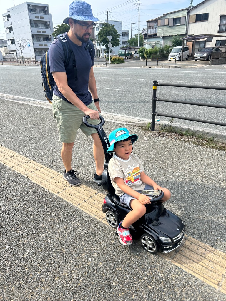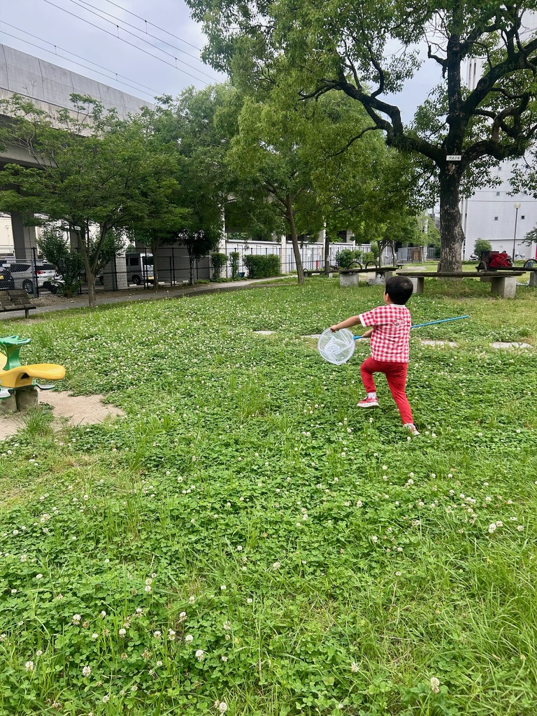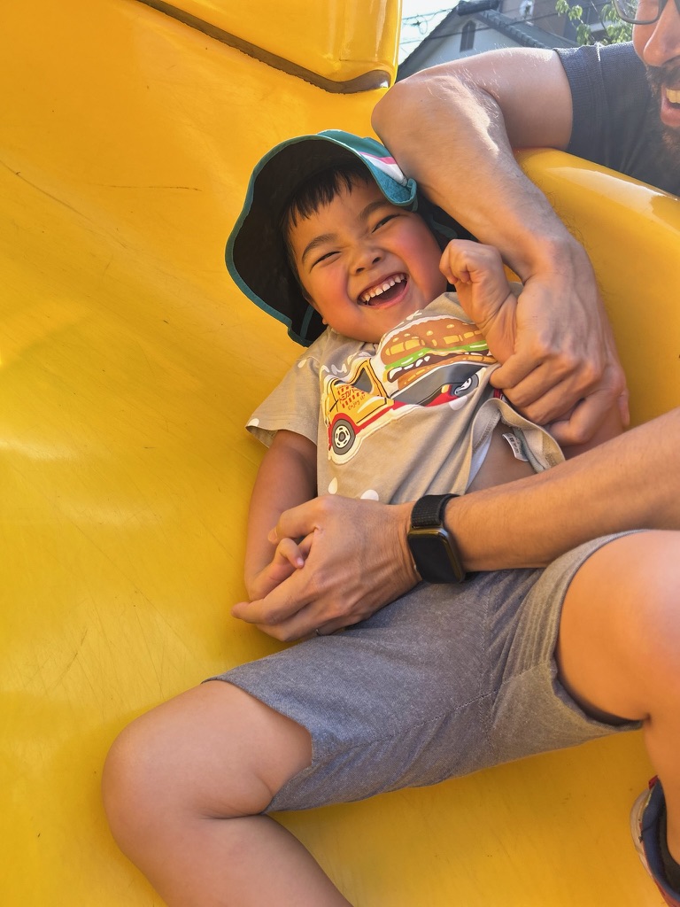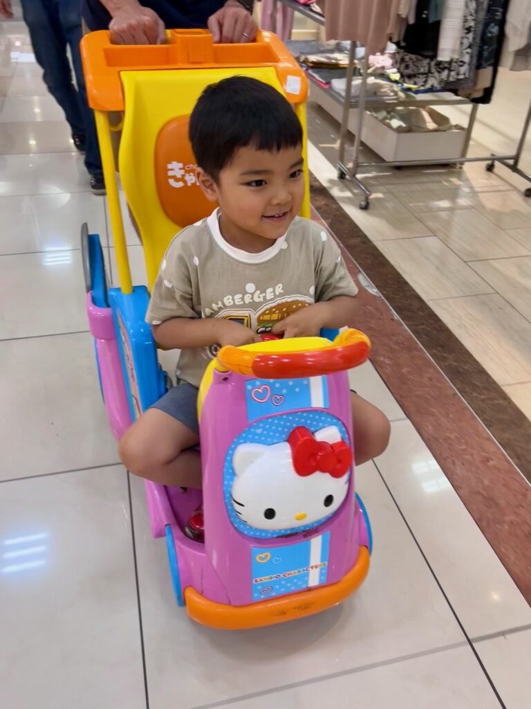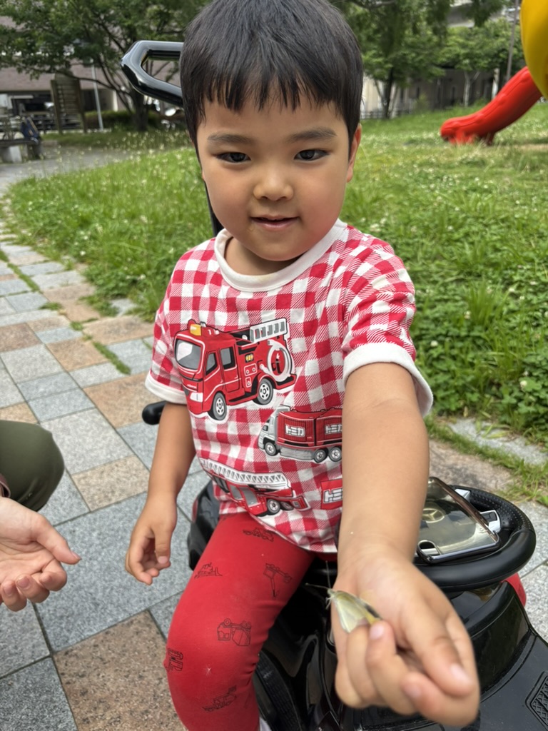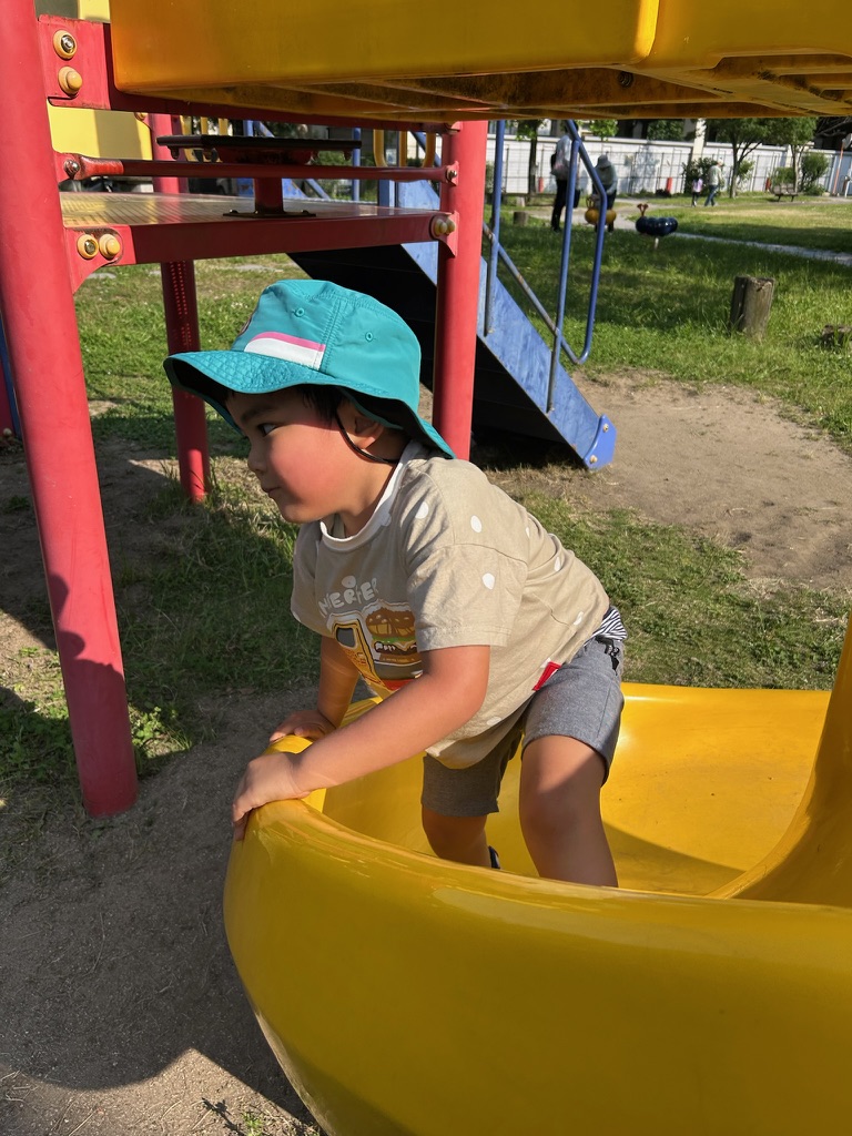 Yesterday was a rainy day, but today was a very nice and sunny day! We went to the park. Nana and Papa had fun watching me run around, drive around, and play! I used my brand new USJ bubble wand and filled the park with beautiful bubbles.