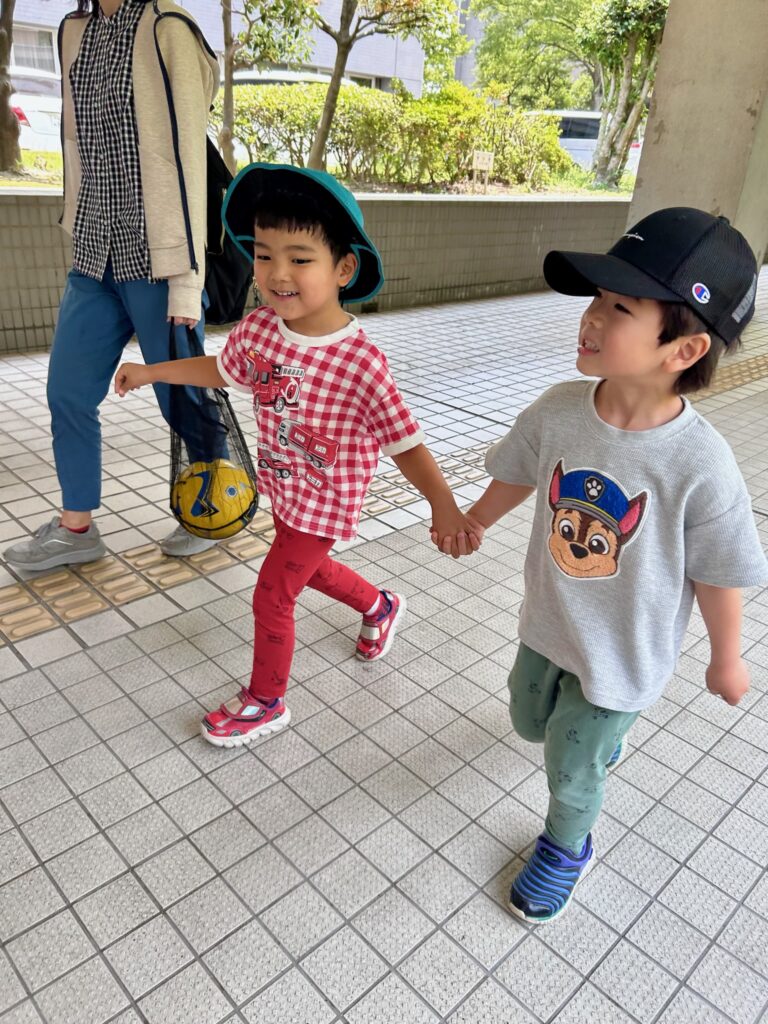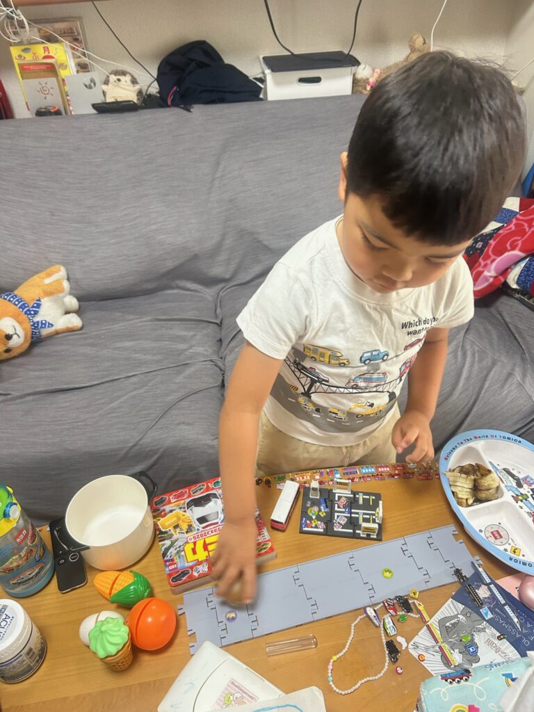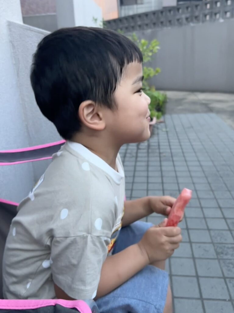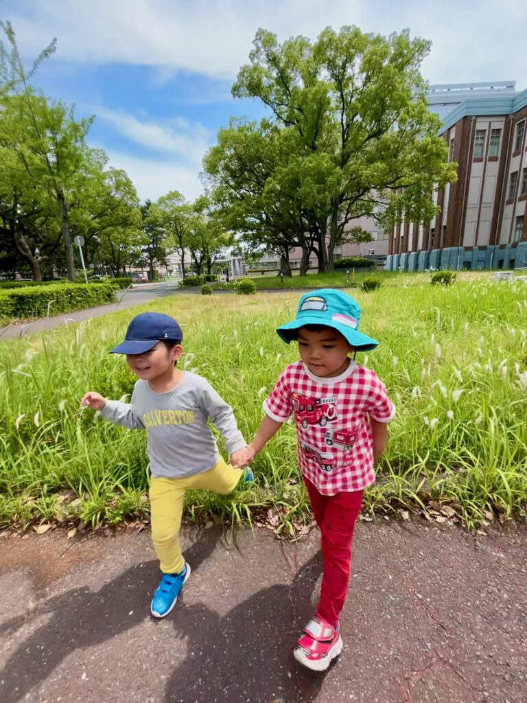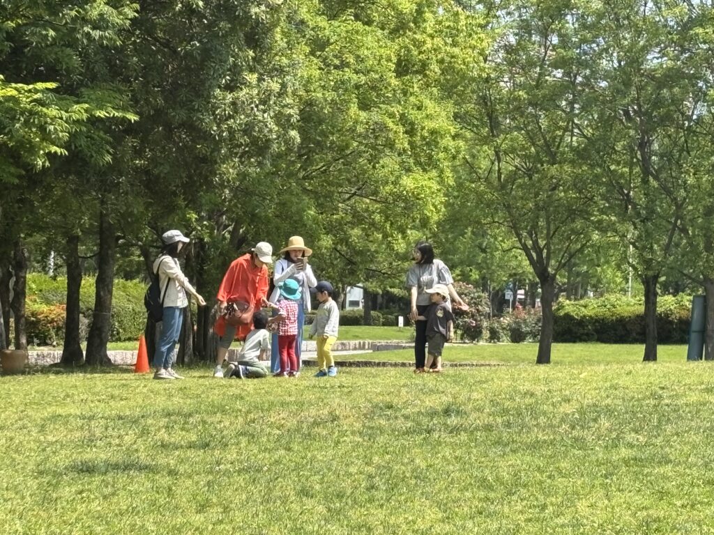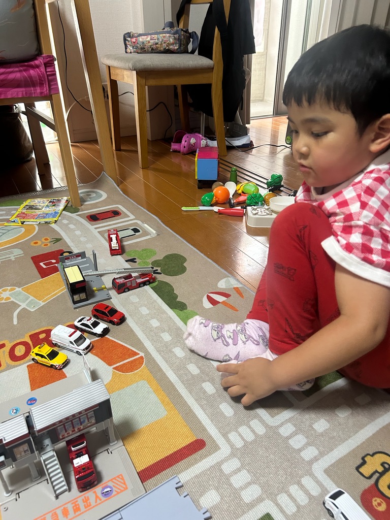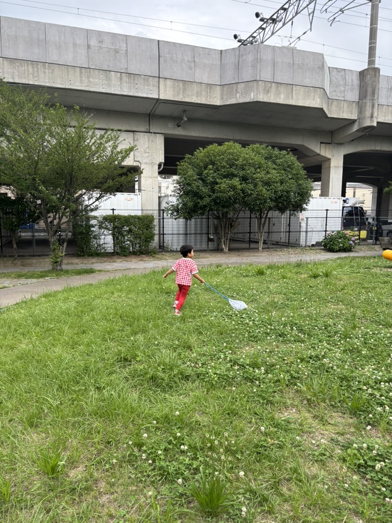 Yesterday was a rainy day, but today was a very nice and sunny day! We went to the park. Nana and Papa had fun watching me run around, drive around, and play! I used my brand new USJ bubble wand and filled the park with beautiful bubbles.