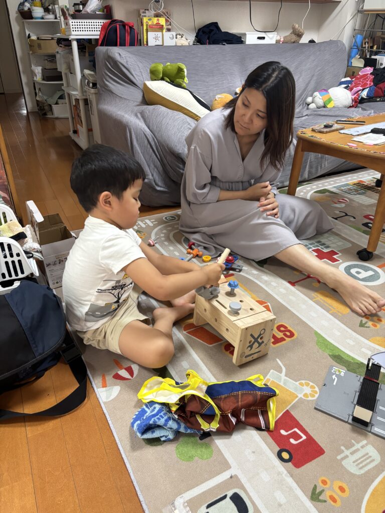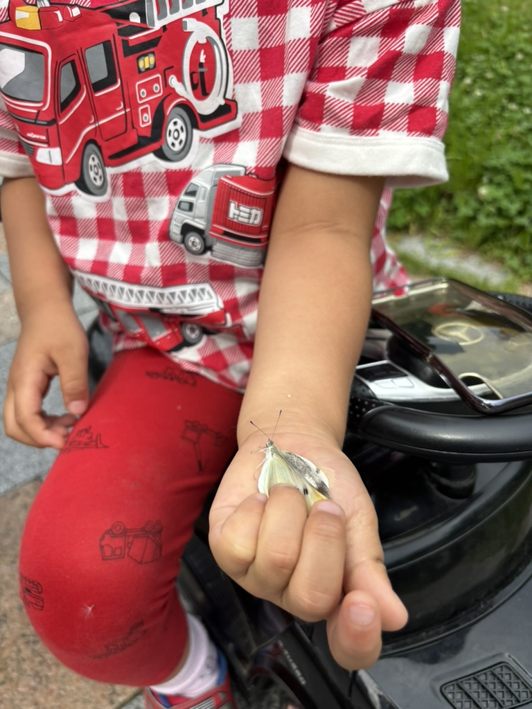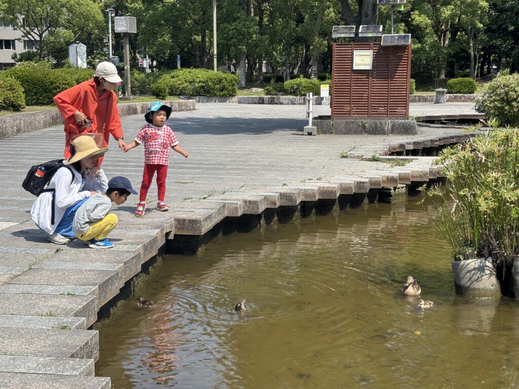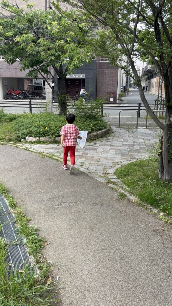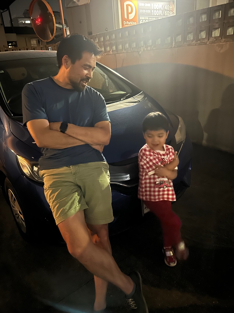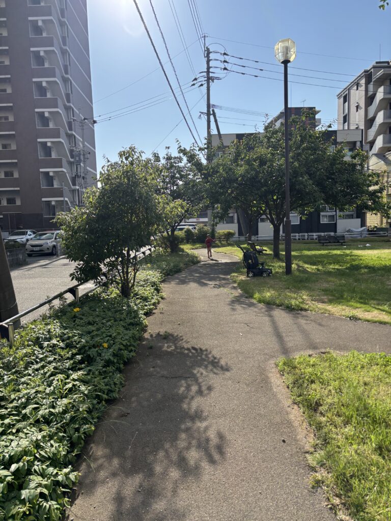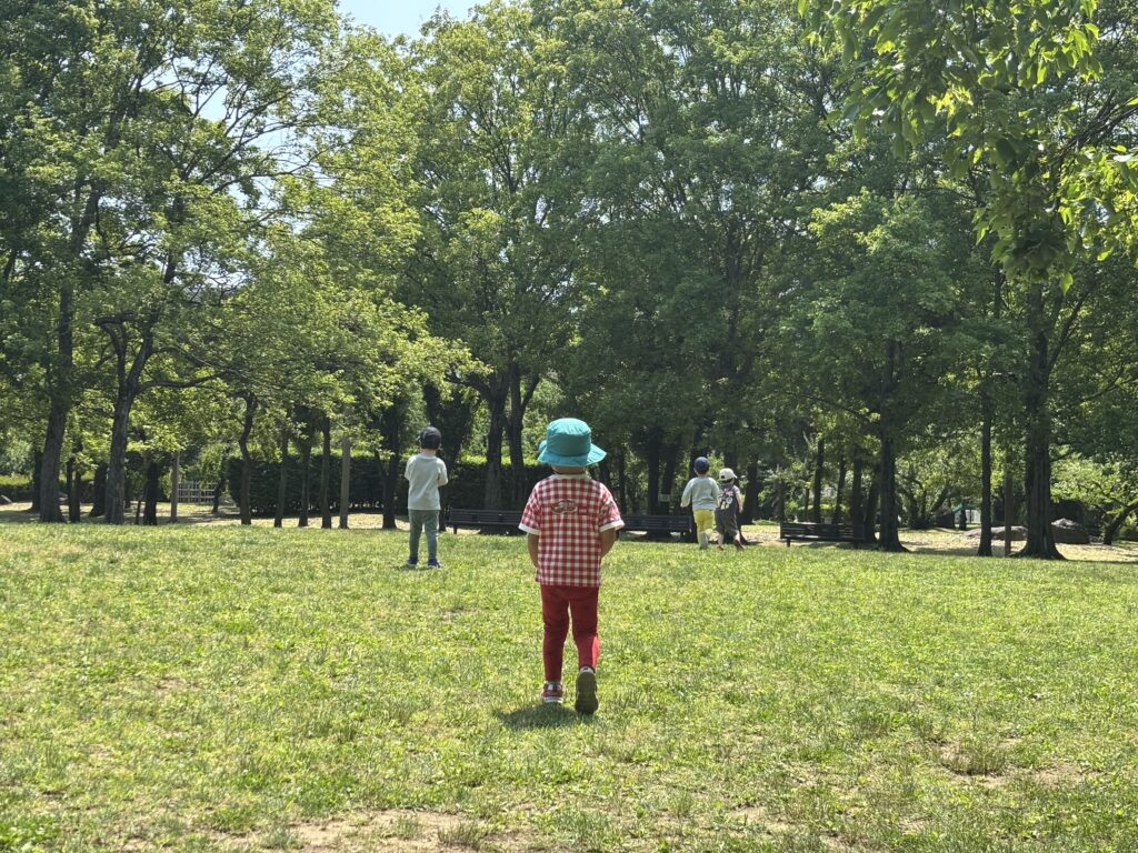 Yesterday was a rainy day, but today was a very nice and sunny day! We went to the park. Nana and Papa had fun watching me run around, drive around, and play! I used my brand new USJ bubble wand and filled the park with beautiful bubbles.