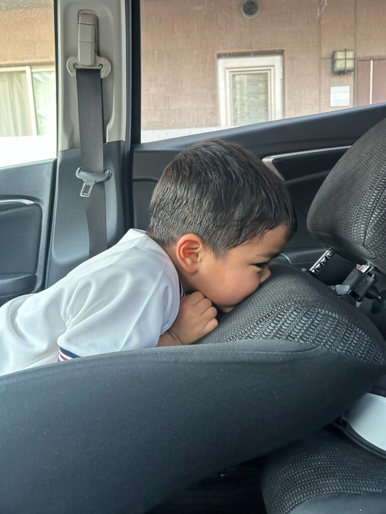 Sometimes after I come home from school I just want to hang out outside. Today I chilled in the car with Mommy.