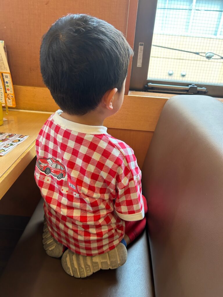 We went out for lunch today and I had fun playing with my toys. But I wanted more toys. I wanted to get a capsule from the machine but I was told that I couldn’t. I didn’t like that. I took a self-imposed timeout. I was able to calm down and then enjoy a good lunch.