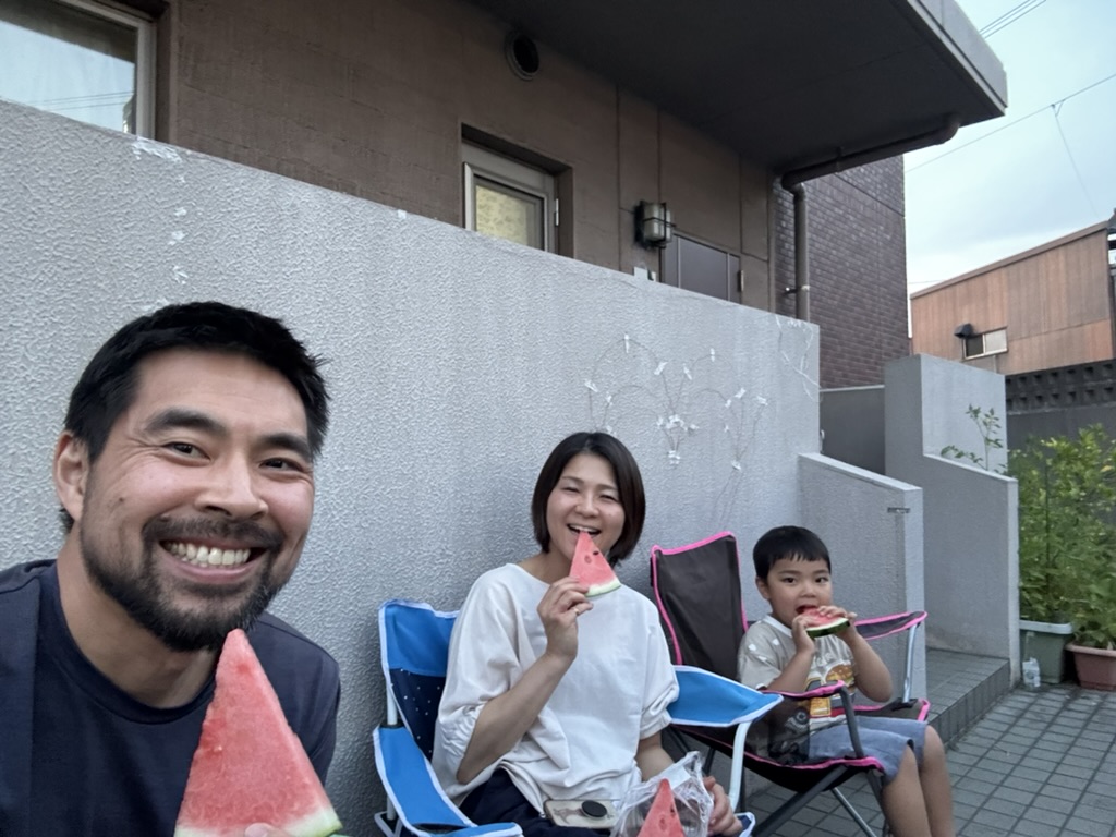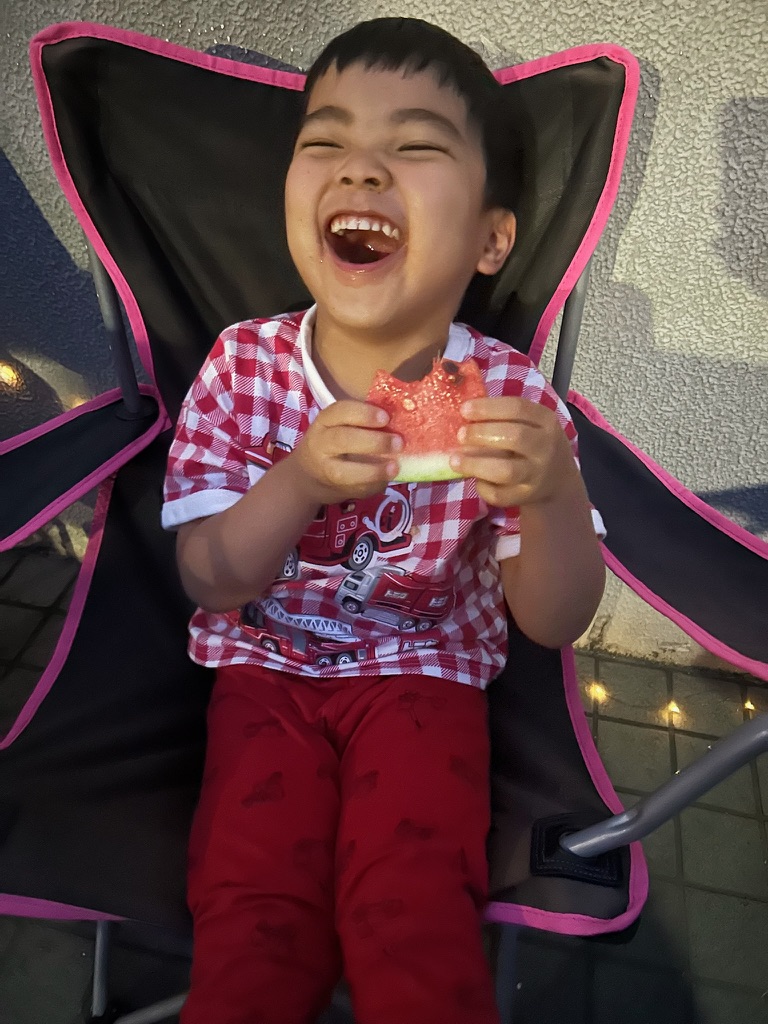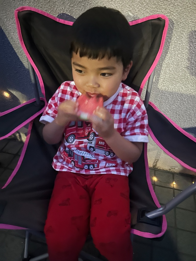 It was another nice evening for eating watermelons outside. I ate a lot again and had a ball spitting the seeds out. It is not often when I’m allowed to spit.