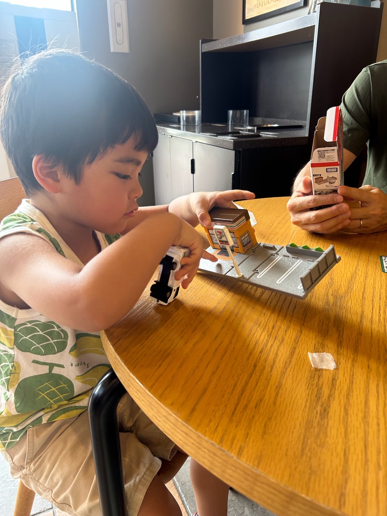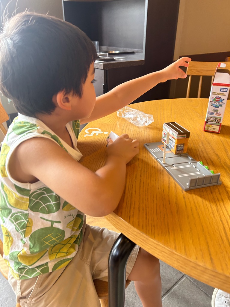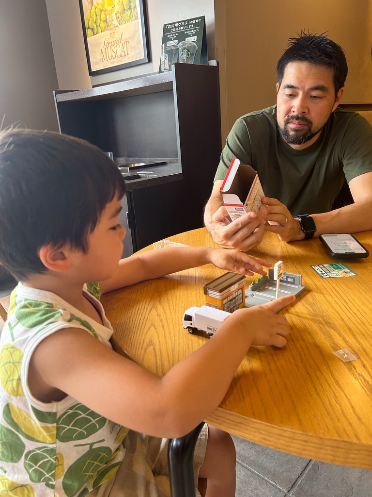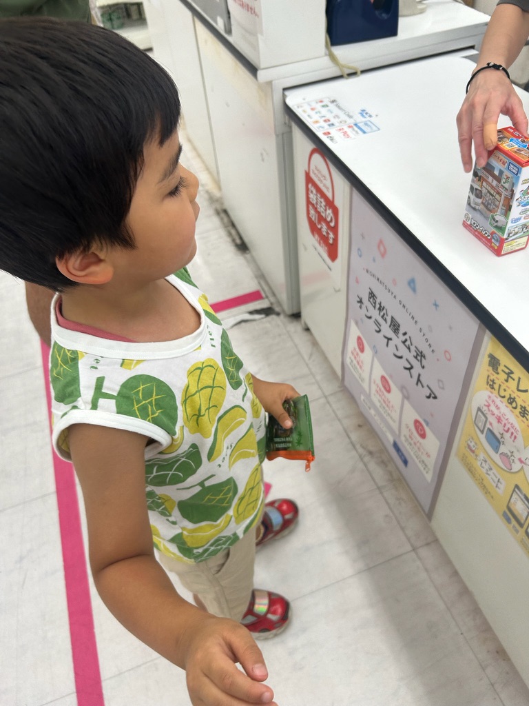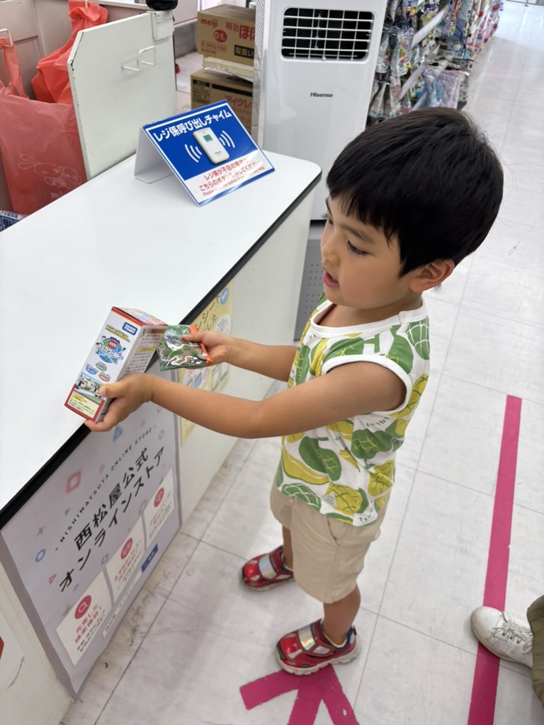 I saved up a lot of money doing chores so that I could by a Tomica Town 7-Eleven. My birthday just past and Christmas is a while away, so if I wanted new toys I needed to buy it myself. I checked my savings earlier this week and I have enough to buy my 7-Eleven. We went to the store and I got my toy and paid for it at the register. I was very happy. Not only did I get a new toy but I earned it all by myself.