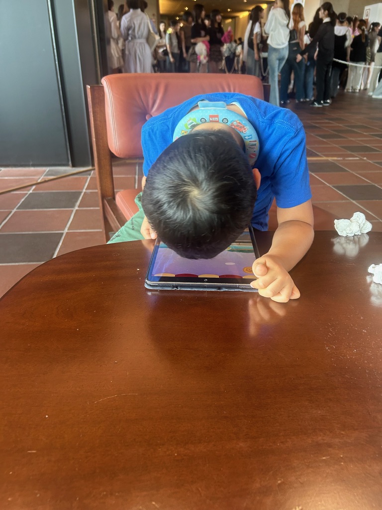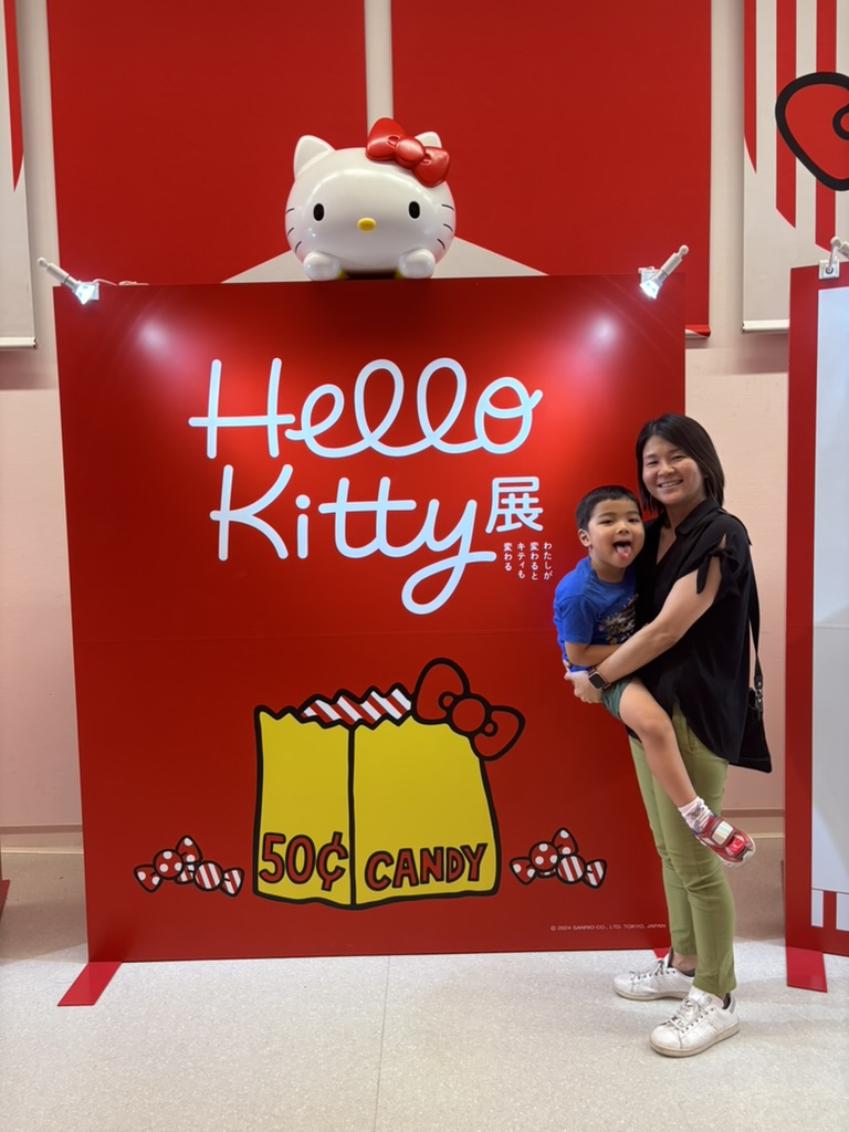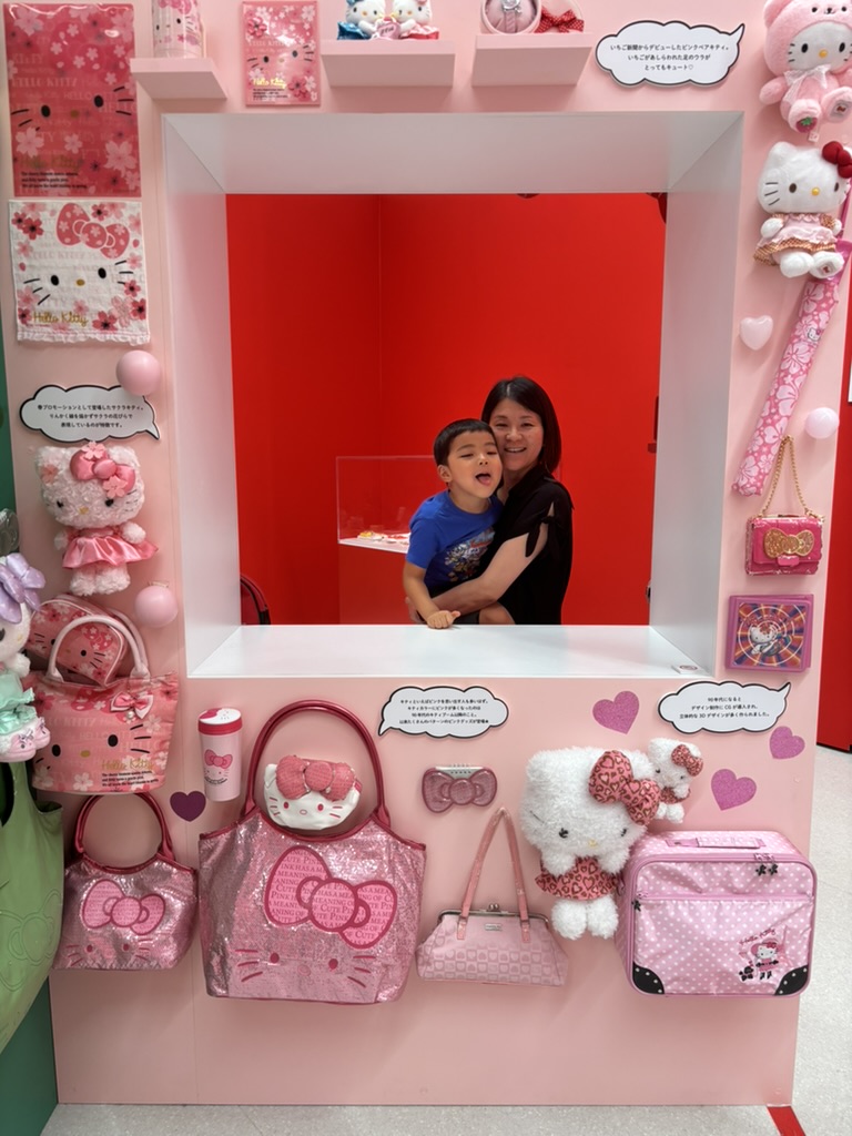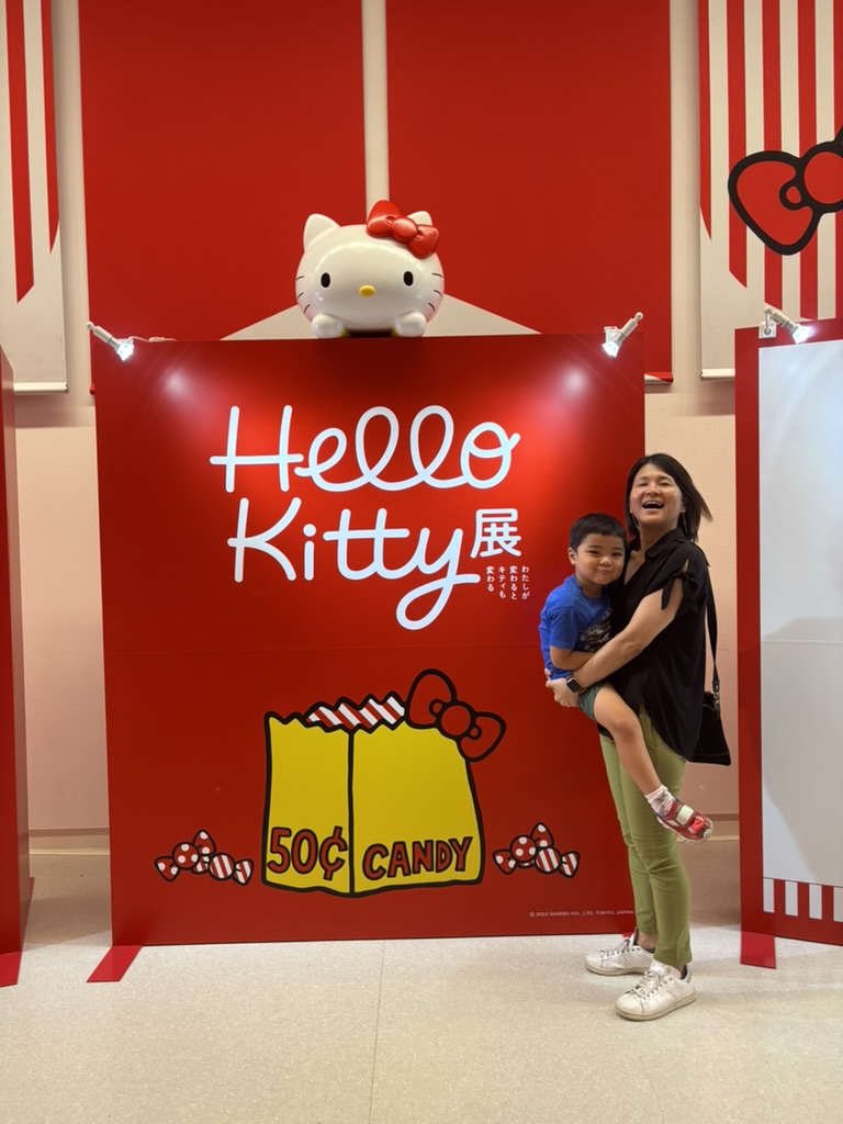 There was a Hello Kitty Exhibition in town, so we went to check it out! It was really cool, but it was also very popular and the line to get in was very long. Daddy waited in line while Mommy and I passed the time in a nearby rest area.