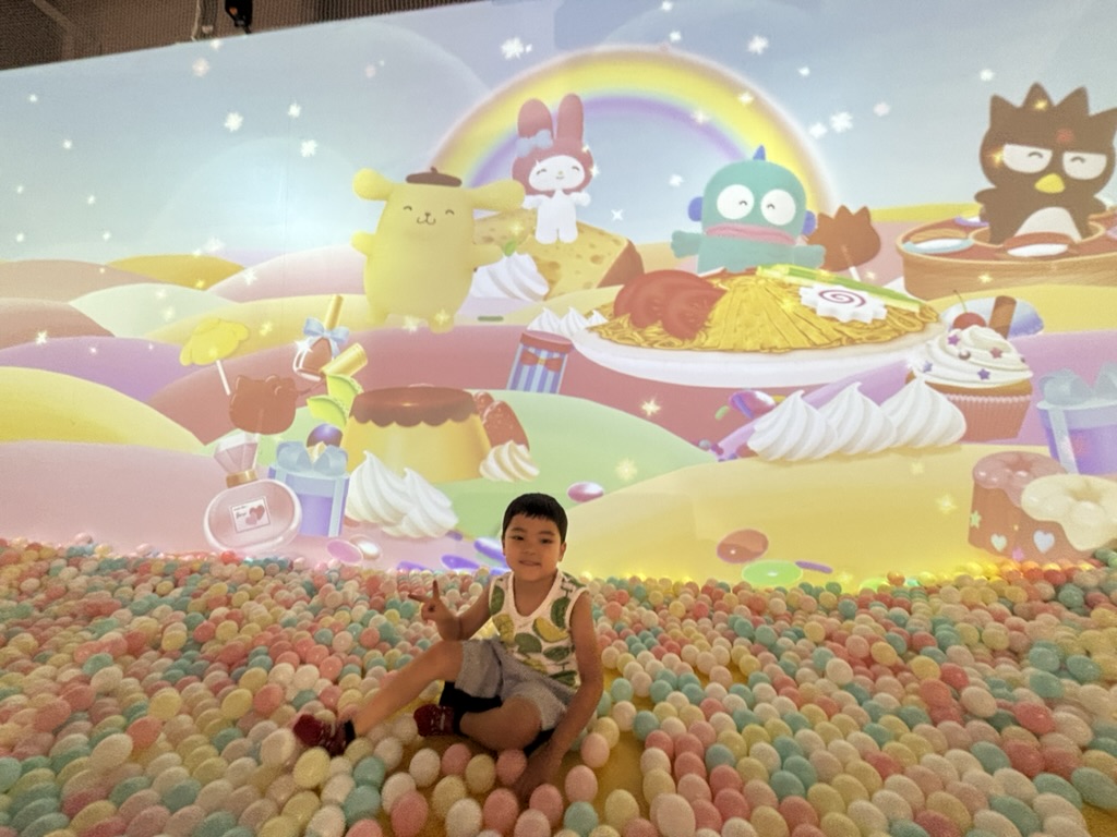 After lunch we went to a Hello Kitty store that had a fun ball game. Daddy and I threw balls against a huge interactive screen. It was a lot of fun!