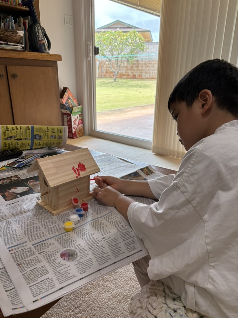 After lunch I worked on a birdhouse kit that Papa got for me. He had heard that I like to use my toy tool kit so I had a go at using the real things. It was a little more complicated than I imagined but I did pretty good. I got to use a lot of tools and paint! I hope a lot of birds come to visit my bird house.